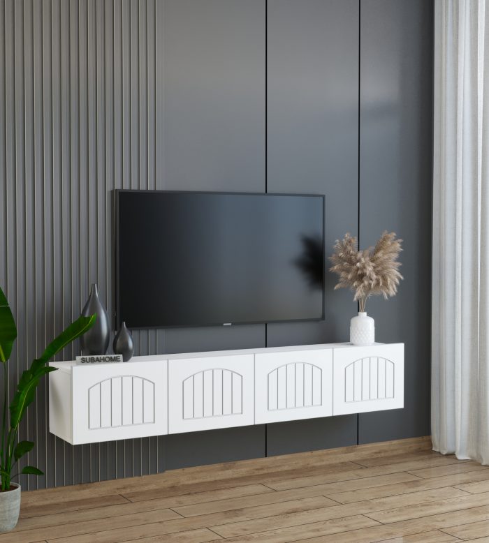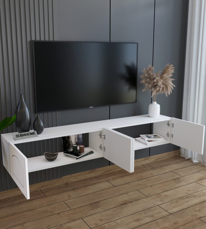 Country – İskandinav Kapak Modern Duvara Monte %100 Mdf Beyaz Tv Ünitesi 160 cm x 30 cm x 30 cm